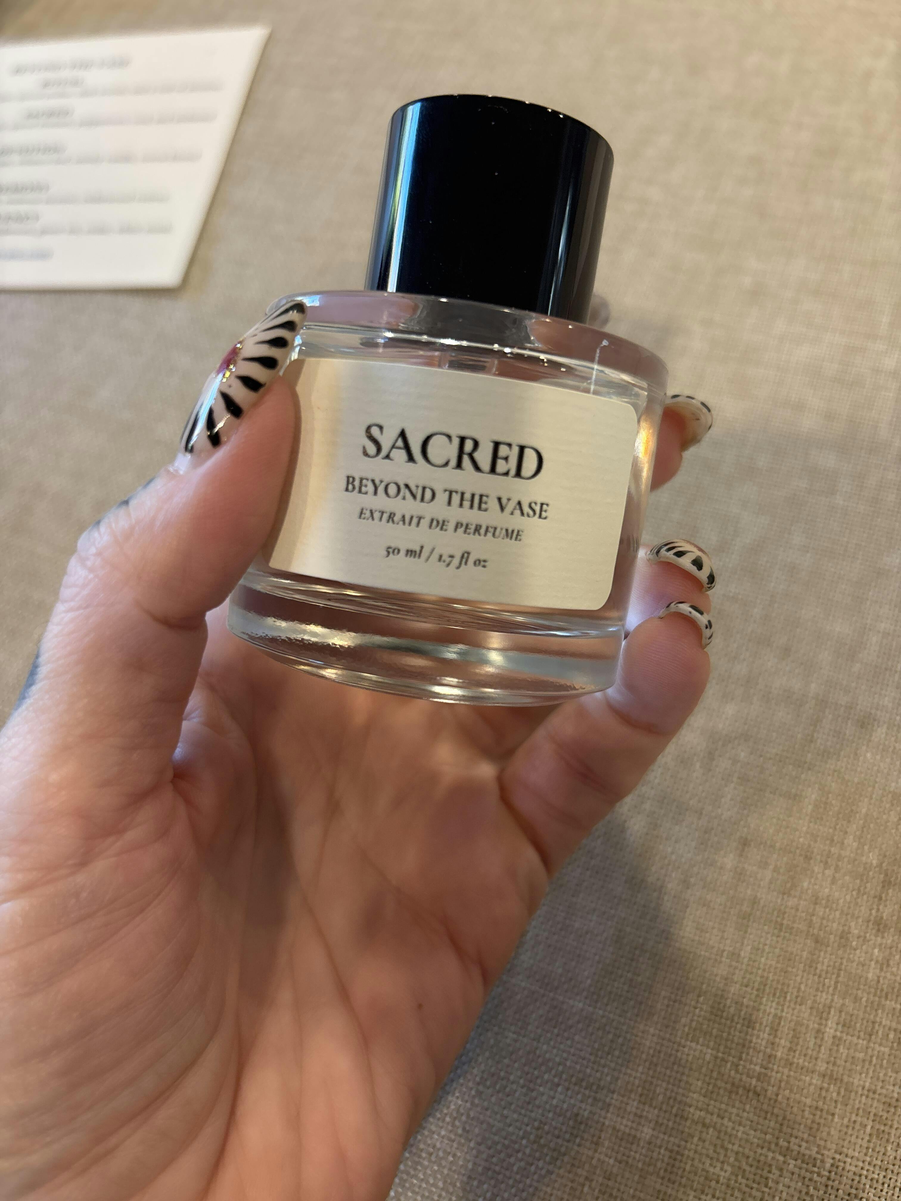 Dark fruit and spice drift through smoke and wood, creating a scent that feels intimate and contemplative. Plum and pomegranate open with richness before giving way to spiced rhubarb and peppercorn. Oud and ambered woods anchor the fragrance in warmth, leaving a quiet, lingering depth on the skin. Sacred is a study in contrast; light and shadow, devotion and desire. Made for those drawn to scent as a ritual.